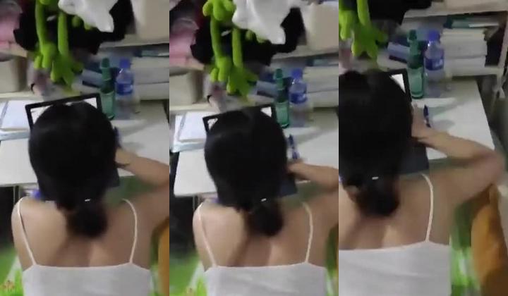 在宿舍写着作业挨操的小姑娘,宿舍里突然来人了